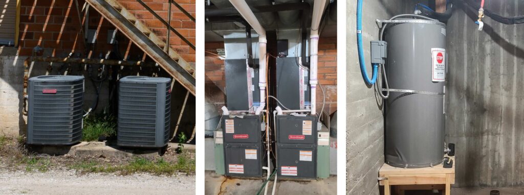 The roof was replaced in 2017 by the previous owners, and they also installed the two new furnaces and A/C units that same year. We assume the hot water tanks were upgraded at the same time.