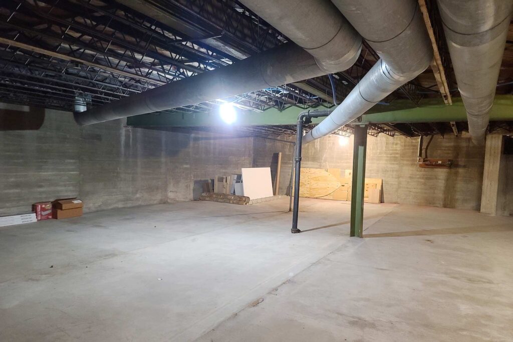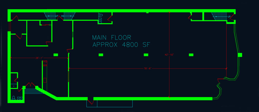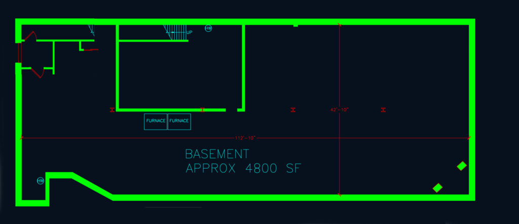 This 15,000 sq. ft. building was completed in 1947. It was built as a department store on the 5,000 sq. ft. first floor, five 2-bedroom apartments on the 5,000 sq. ft. second floor, and a full 5,000 sq. ft. (dry) concrete basement. It features steel I-beam construction and a brick exterior, with oak floors throughout. It has two furnaces (2017) and two A/C units (2017) that cover the first floor. There is a second street entrance with a staircase that leads up to the second floor. In the 1980’s, the front apartment on the second floor was converted to dentist office utilizing the second street entrance.