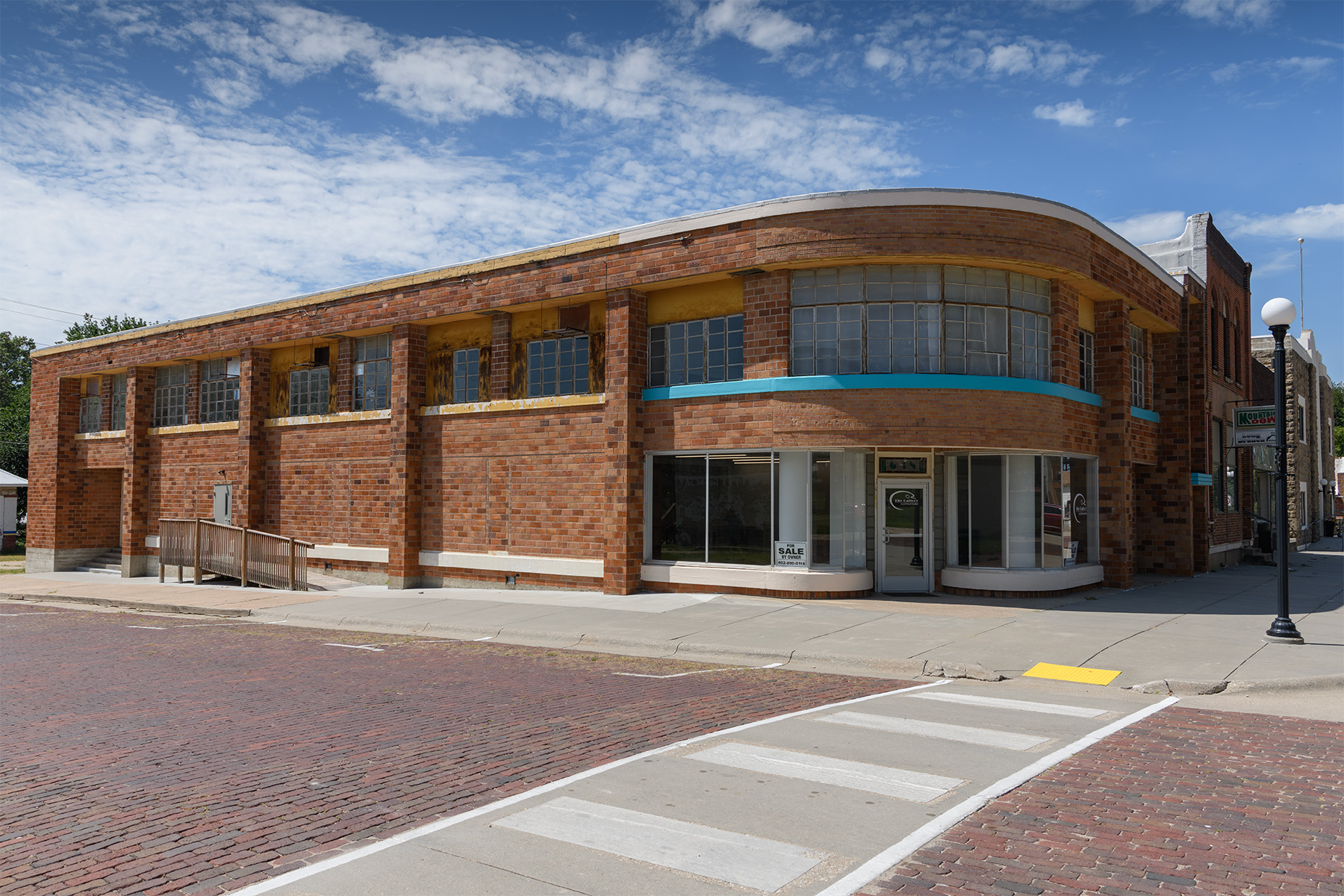 This 15,000 sq. ft. building was completed in 1947. It was built as a department store on the 5,000 sq. ft. first floor, five 2-bedroom apartments on the 5,000 sq. ft. second floor, and a full 5,000 sq. ft. (dry) concrete basement. It features steel I-beam construction and a brick exterior, with oak floors throughout. It has two furnaces (2017) and two A/C units (2017) that cover the first floor. There is a second street entrance with a staircase that leads up to the second floor. In the 1980’s, the front apartment on the second floor was converted to dentist office utilizing the second street entrance.